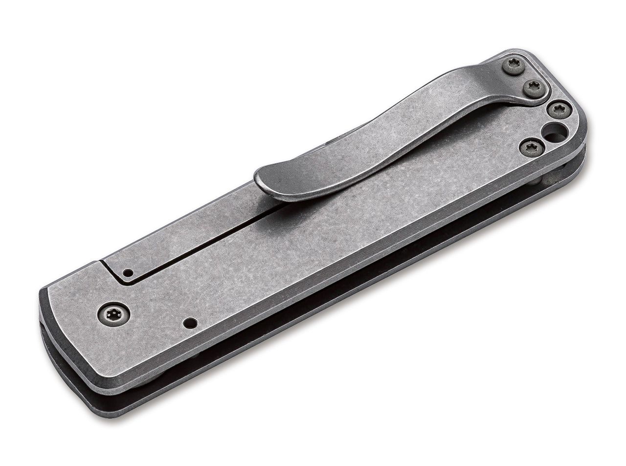Das Böker Plus Lancer ist in der Zweihandversion mit einer Stonewash-Klinge aus D2 ausgestattet, die per Nagelhau geöffnet und von einem stabilen Framelock gesichert wird. Das Messer bietet dank der kompakten und sehr flachen Bauform einen extrem hohen Tragekomfort, während die stabile Bauweise Solidität und Robustheit ausstrahlt. Die Griffschalen werden aus Edelstahl gefertigt und sind mit einem widerstandsfähigem Stonewash-Finish versehen. Auf der Rückseite befindet sich ein Clip (Tip-up).