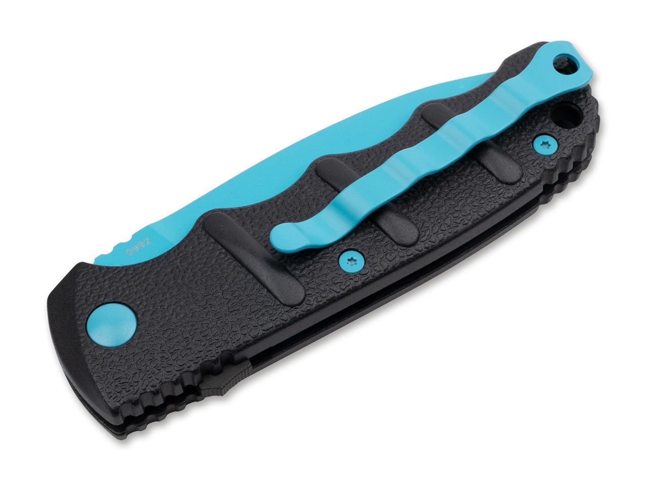 Bei dem Böker Plus AKS-74 aus der Kalashnikov-Serie sind Klinge und Schrauben der exklusiven Blue Scorpion Edition mit einer blauen Beschichtung versehen. Der schwarze Griff aus Aluminium erinnert stark an das Bajonett des berühmten Sturmgewehrs. Die blaue Spearpoint-Klinge wird aus rostfreiem D2 gefertigt und kann zusätzlich zum Druckknopf per Schiebesicherung gesichert werden. Das Messer hat eine Fangriemenöse und einen praktischen Deep-Carry-Clip (Tip-up)