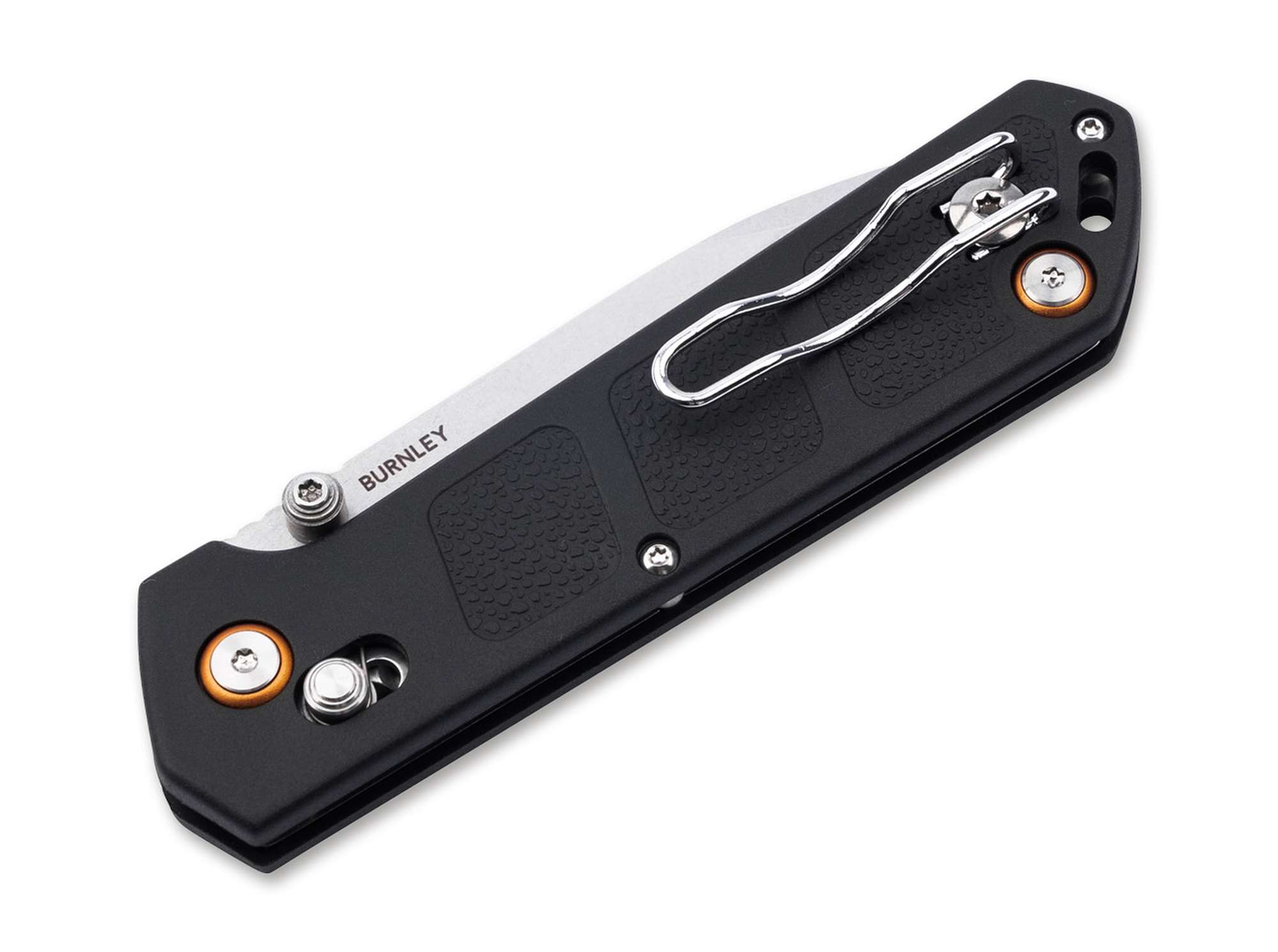 Mit dem Entwurf des Böker Plus Kihon DC verkörpert der amerikanische Custom-Messermacher Lucas Burnley die Idee des japanischen Kihon. Die satinierte Droppoint-Klinge aus D2 öffnet dank Kugellagerung über den abnehmbaren Daumenpin, wohingegen der Schieberiegel des Axis Locks eine sichere und praktische Entriegelung des Messers garantiert. Der rutschsichere Griff mit texturierten Karrees besteht aus hochfestem GFN und liegt angenehm in der Hand. Orange anodisierte Ringe um Klingenachsschraube und der großen Griffschraube runden das Messer optich ab. Mit Fangriemenöse und umsetzbarem Tip-Up Drahtclip für flexible Tragevarianten.