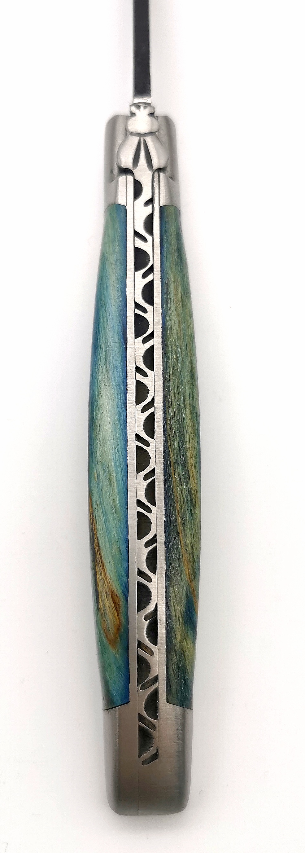 Laguiole Village 12cm gefärbte Buche blau Brut de Forge