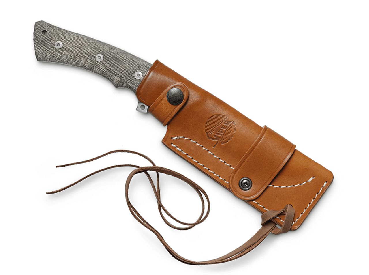 Das Gianghi von Viper ist ein Messer, das sich nicht nur auf der Jagd, sondern auch im Alltag oder im Outdooreinsatz bestens bewährt. Die Klinge aus Böhler N690 besitzt einen kleinen, aber dennoch effektiven Fingerschutz, und die Lederscheide ist überaus hochwertig. Details wie der sanft gerundete Klingenrücken oder die dezente, aber wirksam geriffelte Daumenauflage setzen Akzente, die das Gesamtbild perfektionieren. Mit Stonewash-Klinge und Griffbeschalung aus Green Canvas Micarta.